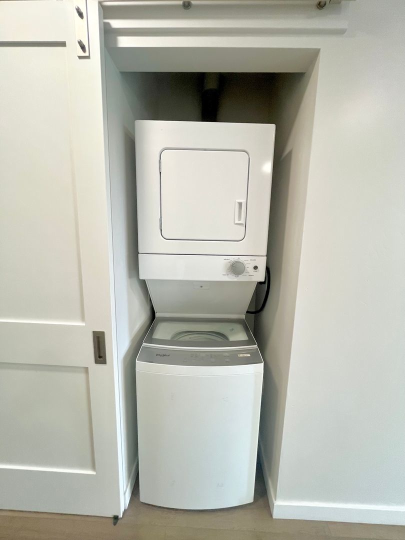 This unit offers personal washer dryer in unit and a private patio!