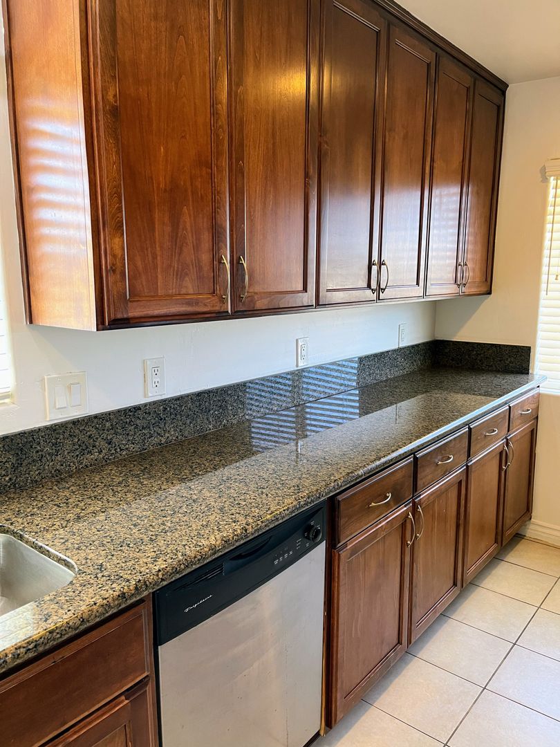 This upstairs 1 bedroom, 1 bath unit features a nice, updated kitchen with stainless steel appliances, granite counters and a tile flooring. A stackable washer & dryer is conveniently located in the unit. Enjoy your own private patio with a sliding door right off the main living area. This gated community has off street parking with only 10 units.